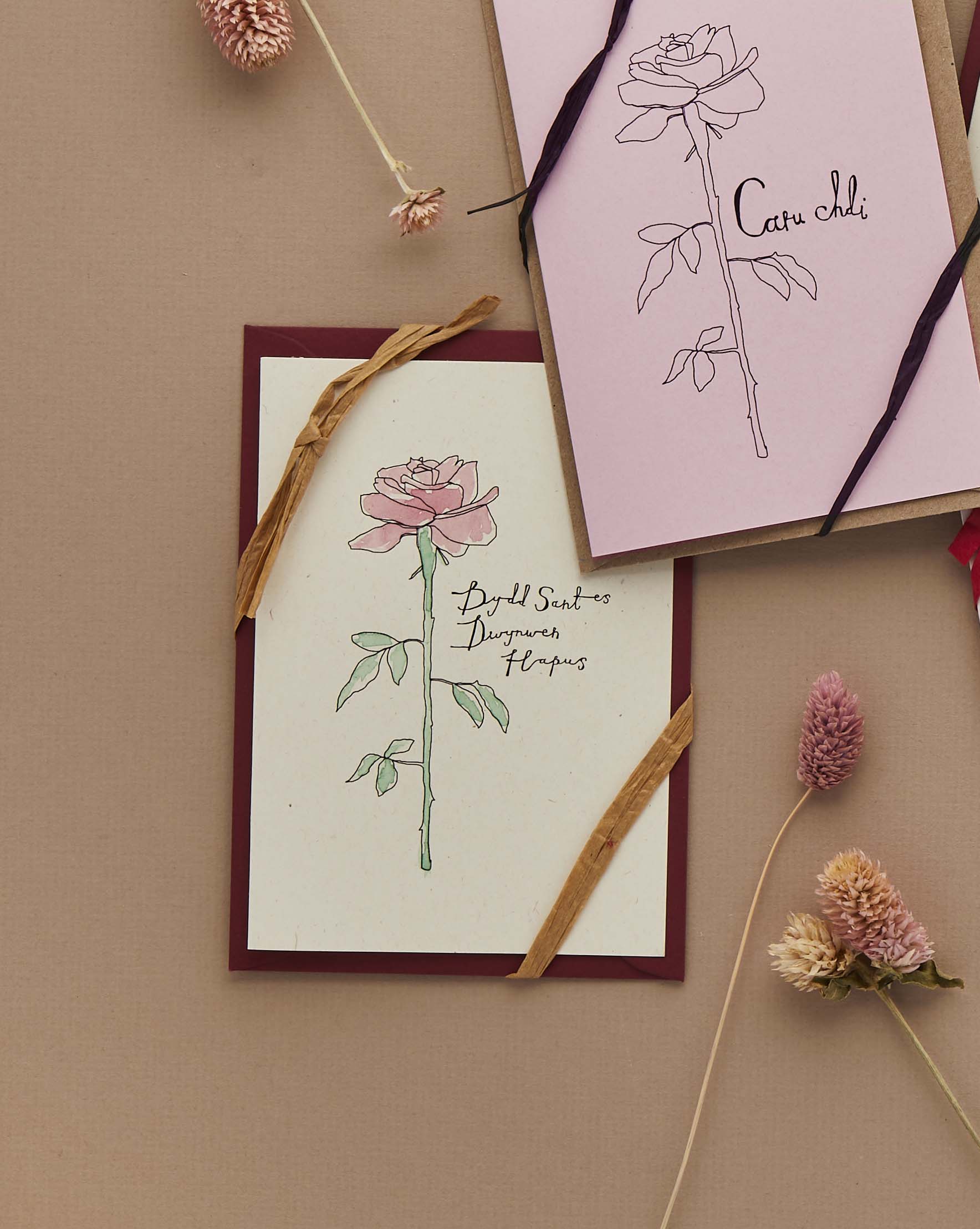 Printed on recycled card - plain inside - comes with a kraft paper envelope